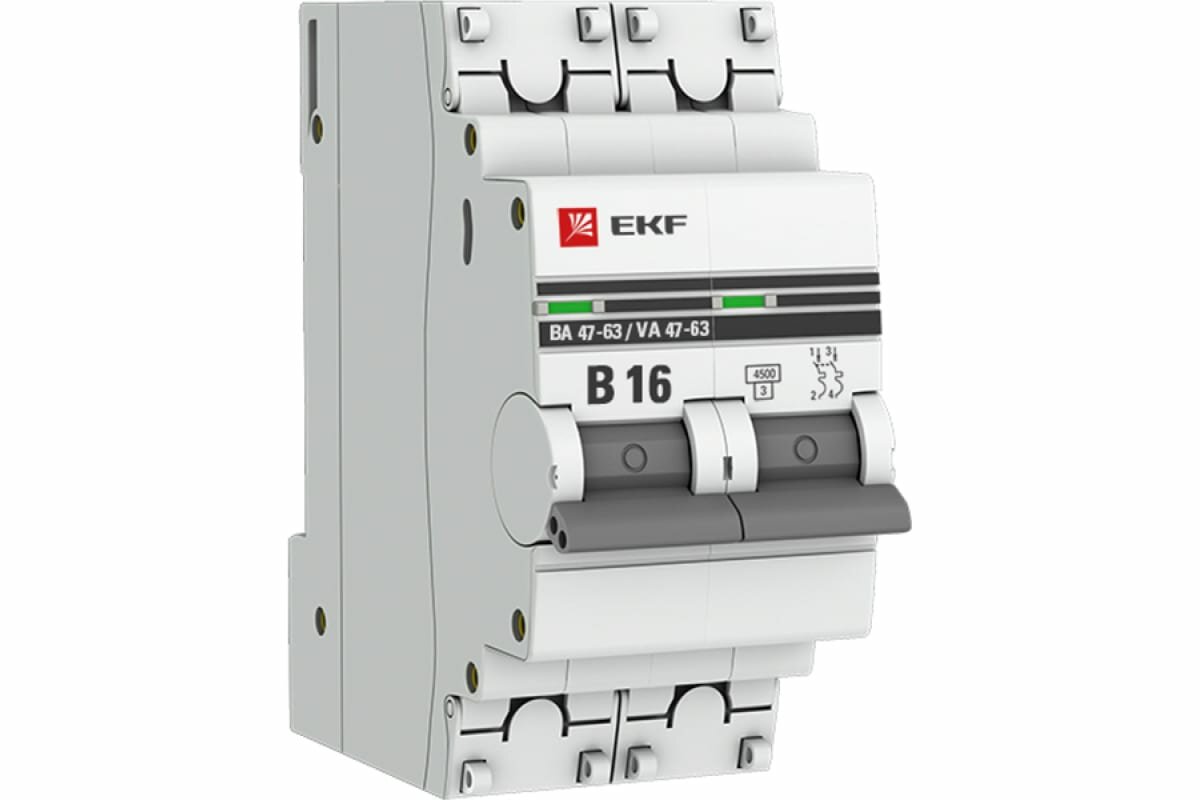Автоматический выключатель EKF 2P 16А (В) 4,5kA ВА 47-63 PROxima mcb4763-2-16B-pro информация: