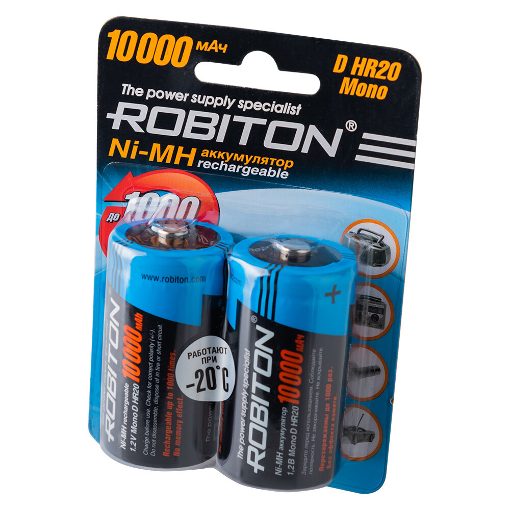 Аккумуляторы Ni-MH тип D на 10000мАч 1,2В (блистер 2шт - цена за блистер) - 10000MHD-2 (Robiton) (код заказа 13650 )