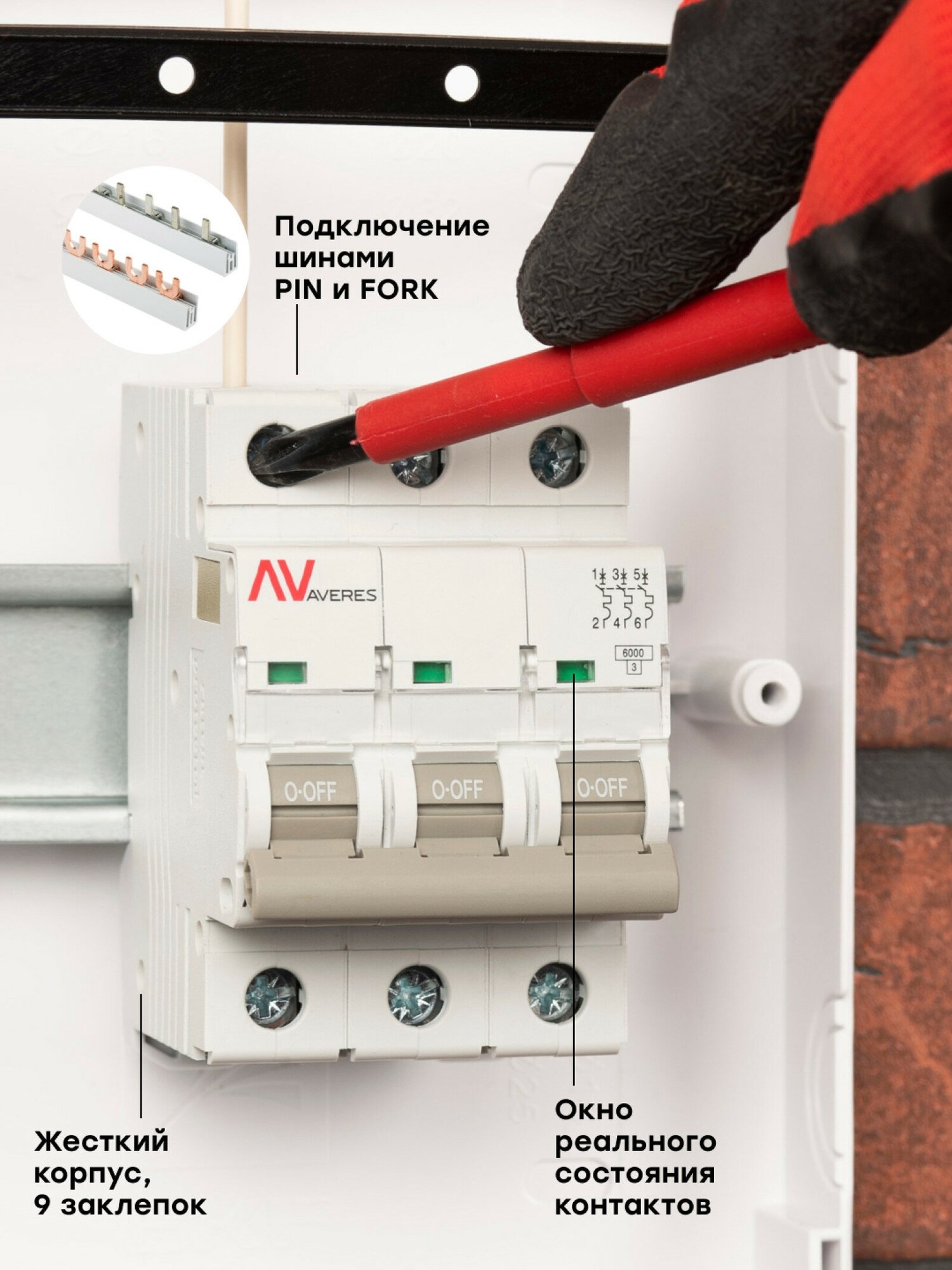 Автоматический выключатель Ekf 3п C 10А 6кА AV-6 AVERES, mcb6-3-10C-av