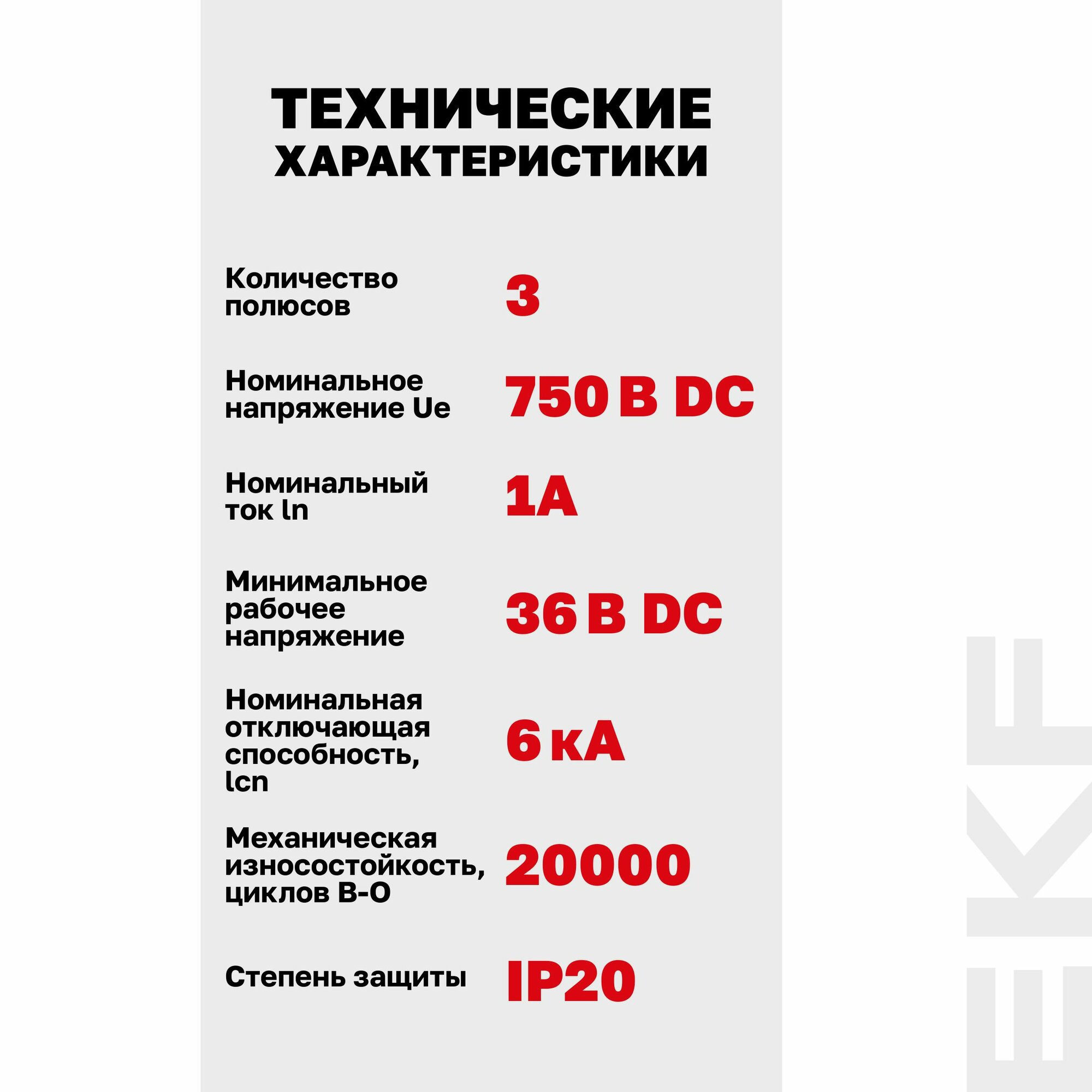 Автомат постоянного тока 1А, тип C, трехполюсный 3P, 6kA, EKF AVERES AV-6 DC (Выключатель автоматический C1 (DC)) информация: