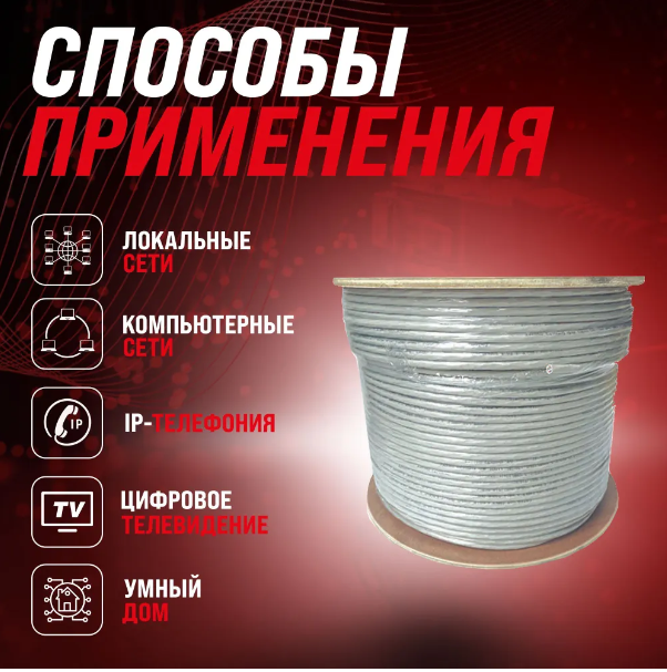 Кабель витая пара для локальной сети LAN UTP4 CAT5E 24AWG CCA PE RIPO outdoor уличный 305 метров 001-112003 7 000 ₽