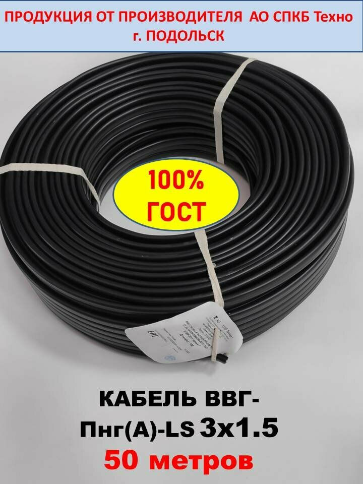 10 цен на Силовой кабель ВВГ-Пнг(А)-LS 3х1.5, 50м (смотка), вес 5.5кг, спбк Техно г. Подольск
