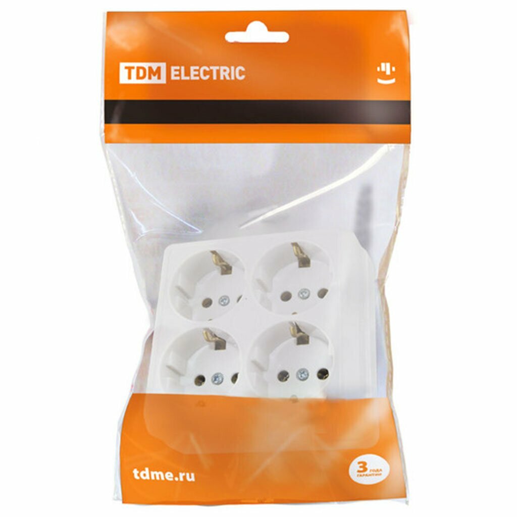 Розетка открытой установки, 4 гнезда, с заземлением, 16 А, пластик, IP20, белая, 2П+3, TDM Electric, Ладога, SQ1801-0122 информация: