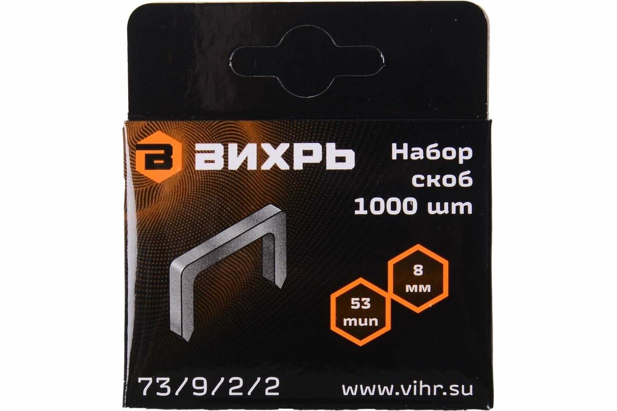 Скобы тип 53 (1000 шт, 8 мм) для мебельного степлера Вихрь 73/9/2/2 информация:
