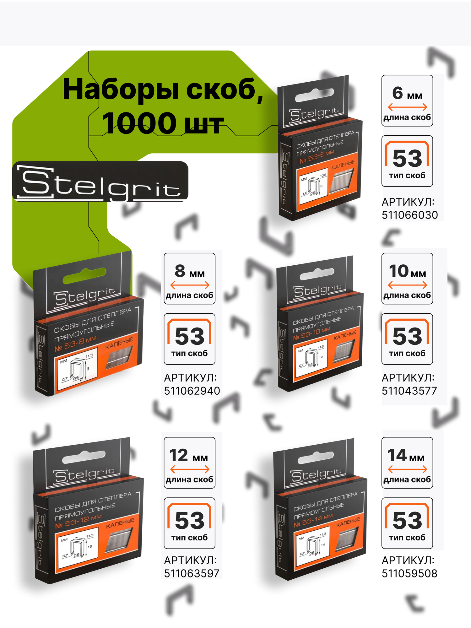 Скобы для мебельного степлера Stelgrit 655003
