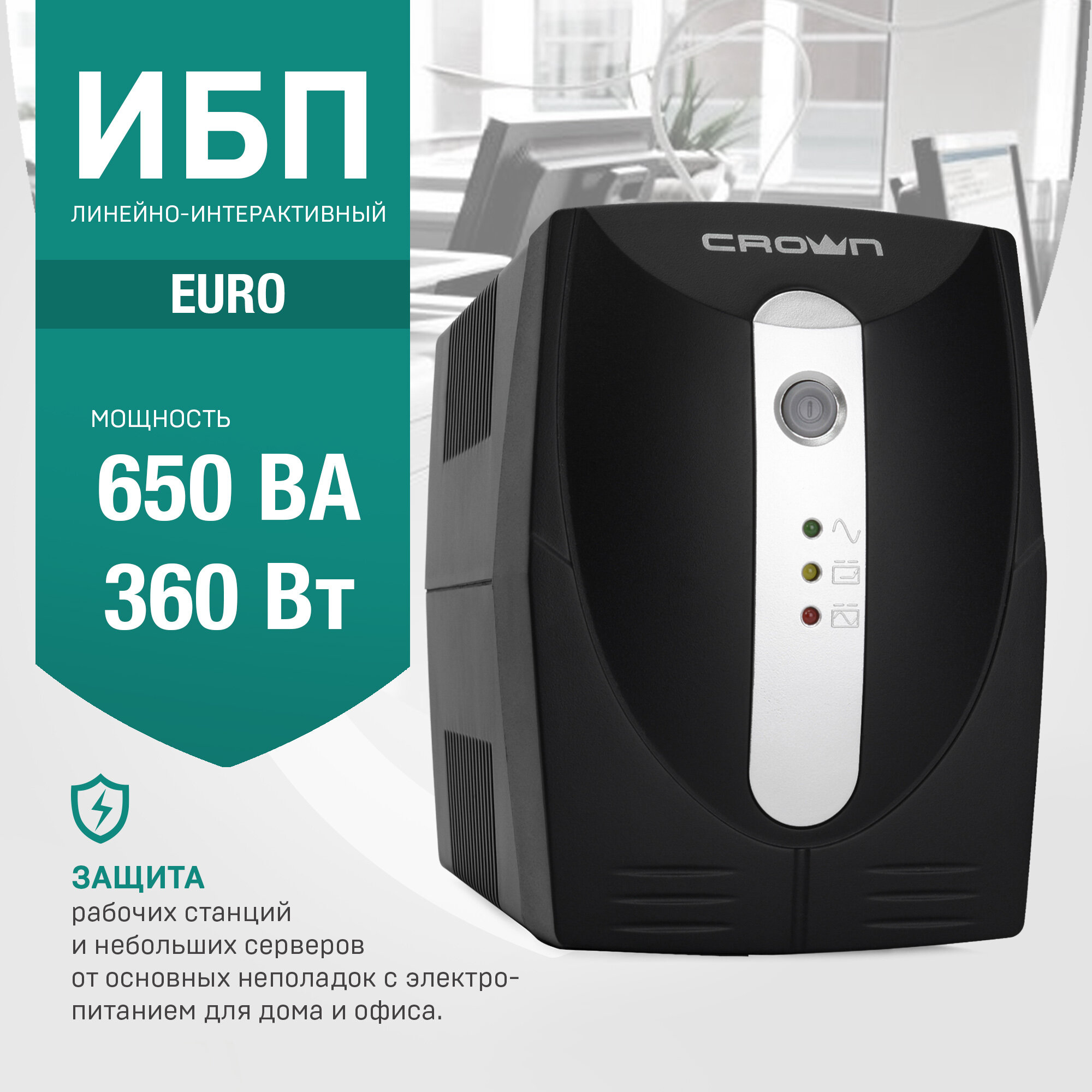 10 цен на Источник бесперебойного питания Crown Micro CMU-650X, интерактивный, ступенчатая аппроксимация синусоиды