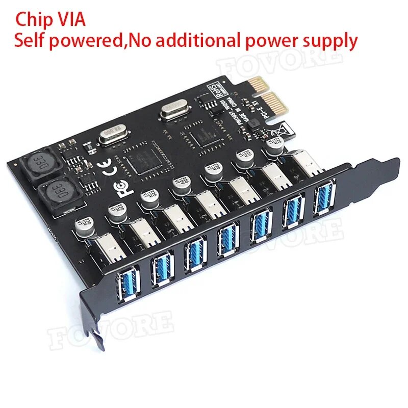10 цен на FOVORE Адаптер PCI-E на 7 портов USB 3.0, VIA Chip