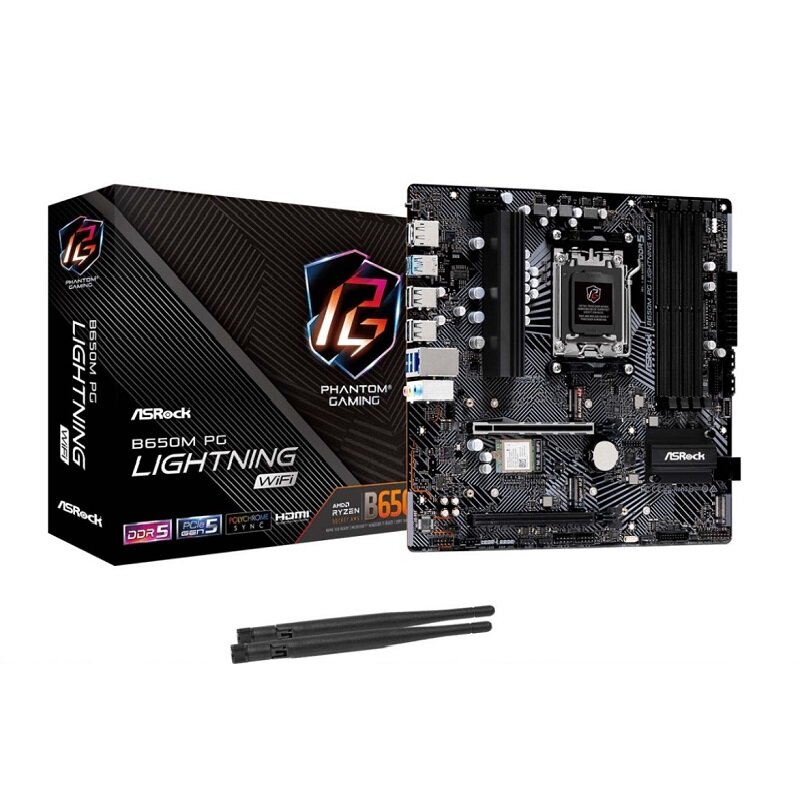 ASRock B650M PG LIGHTNING WIFI, Socket AM5, AMD B650, 4xDDR5-5200, HDMI+DP, 2xPCI-Ex16, 4xSATA3(RAID 0/1/10), 3xM.2, 8 Ch Audio, 1x2.5GLan, WiFi, (4+4)xUSB2.0, (3+4)xUSB3.2, (1+1)xUSB3.2 Type-C™, mATX, RTL B650M PG LIGHTNING WIFI