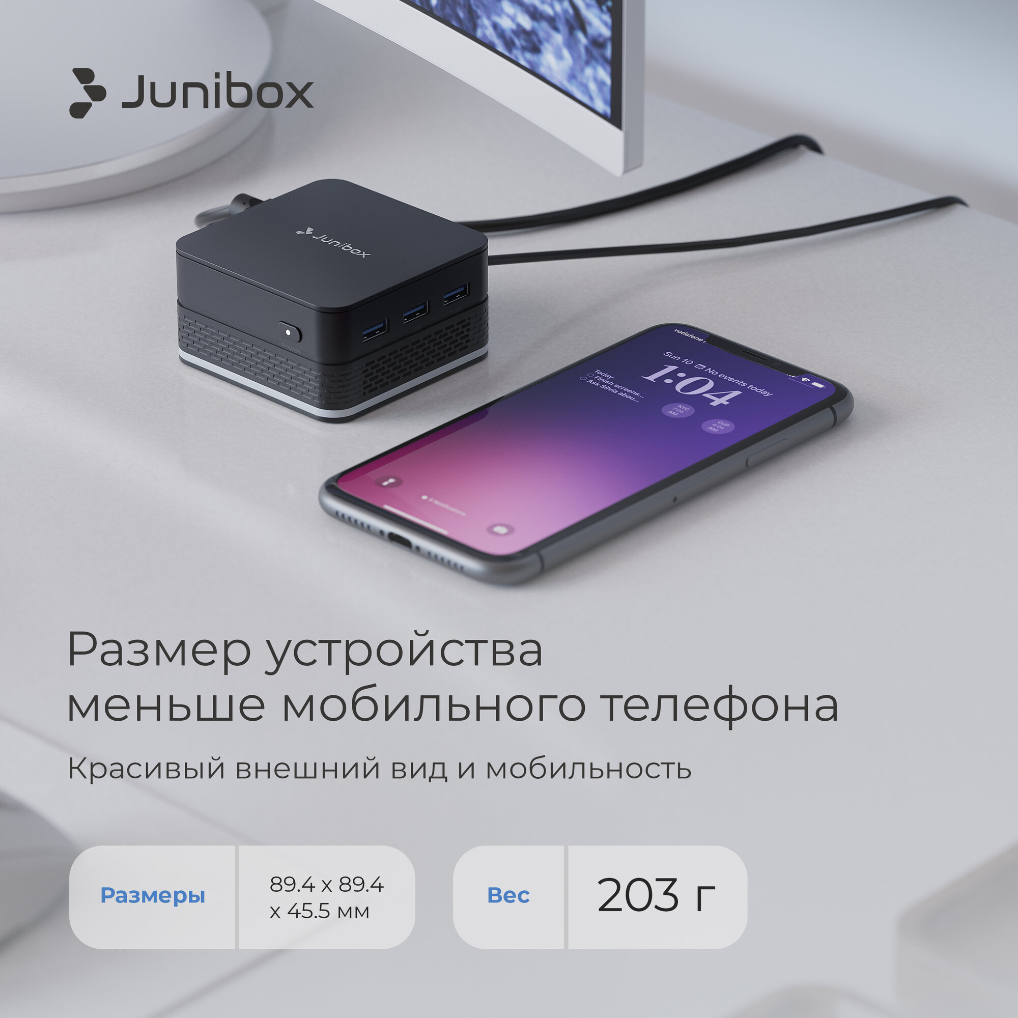 10 цен на Мини ПК JuniBox Q-ube Pro неттоп DDR16 SSD512 Intel N100 up to 3.4 GHz, Intel HD Graphics 600, Windows 11 Pro, серый