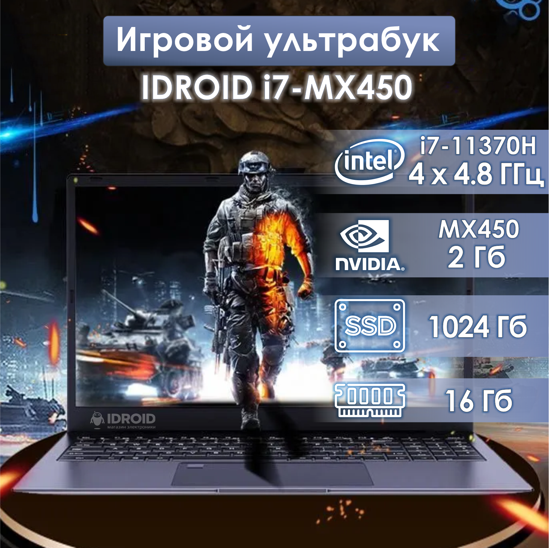 Игровой ноутбук iDROID, 15,6" Intel Core i7-11370H, Nvidia GeForce MX450_2 GB, RAM 16 GB, SSD 1024 GB, Win 11 Pro информация:
