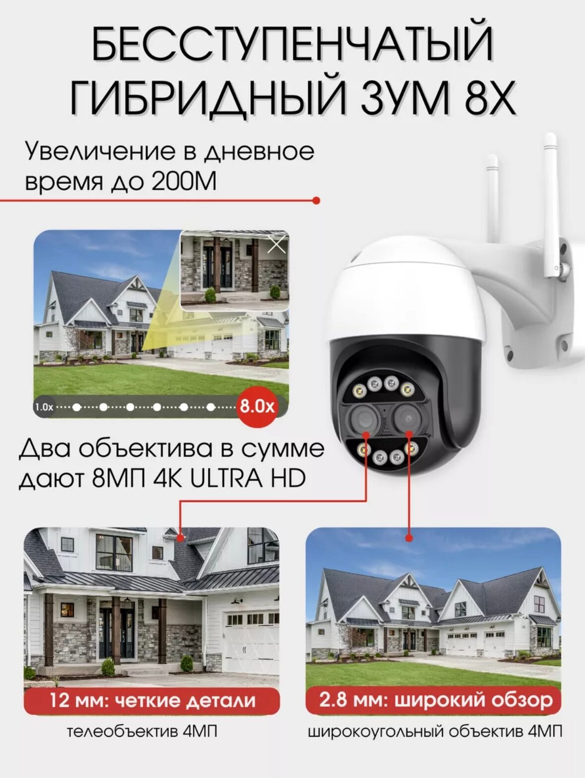 Отзывы на Уличная поворотная iP Wi-Fi камера видеонаблюдения с бинокулярным 8x зумом, 8 МП, iCsee