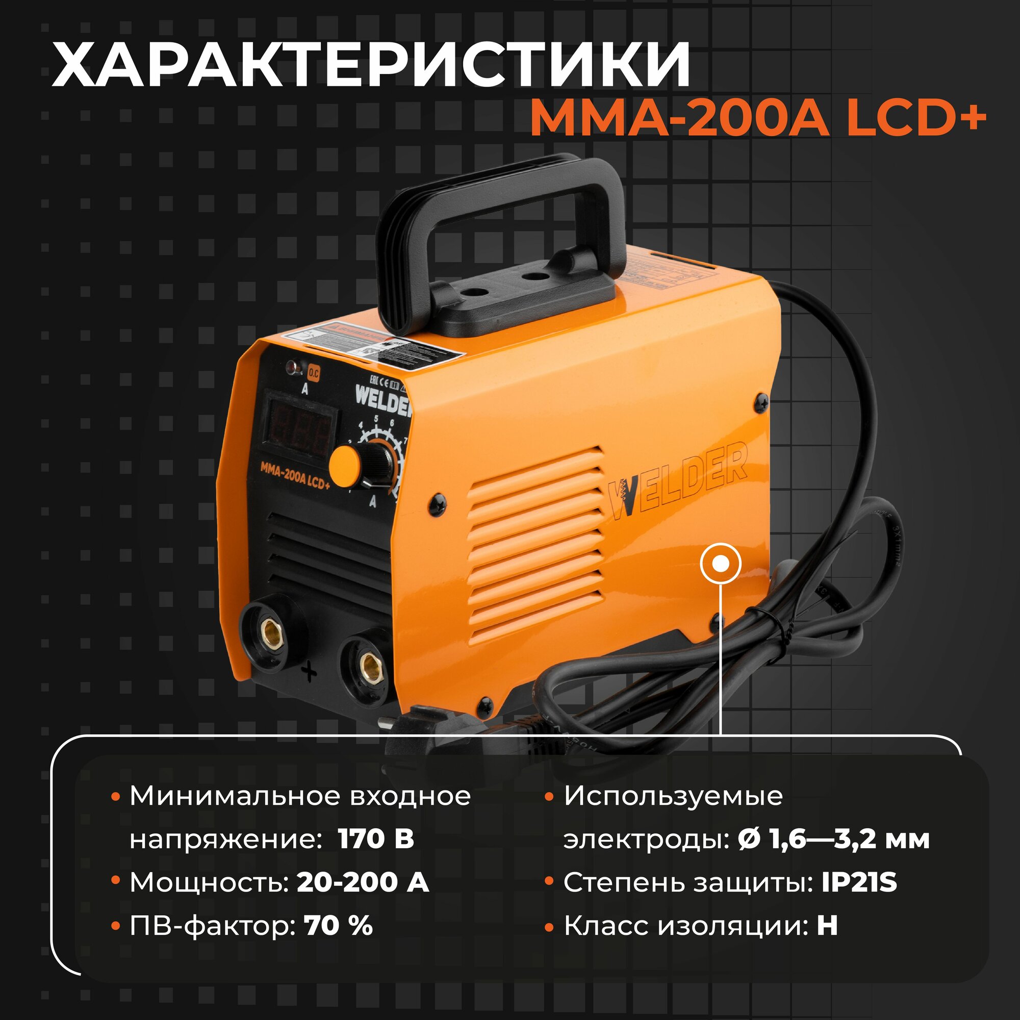 Сварочный аппарат инверторный Welder MMA-200A LCD+, ручная дуговая сварка информация: