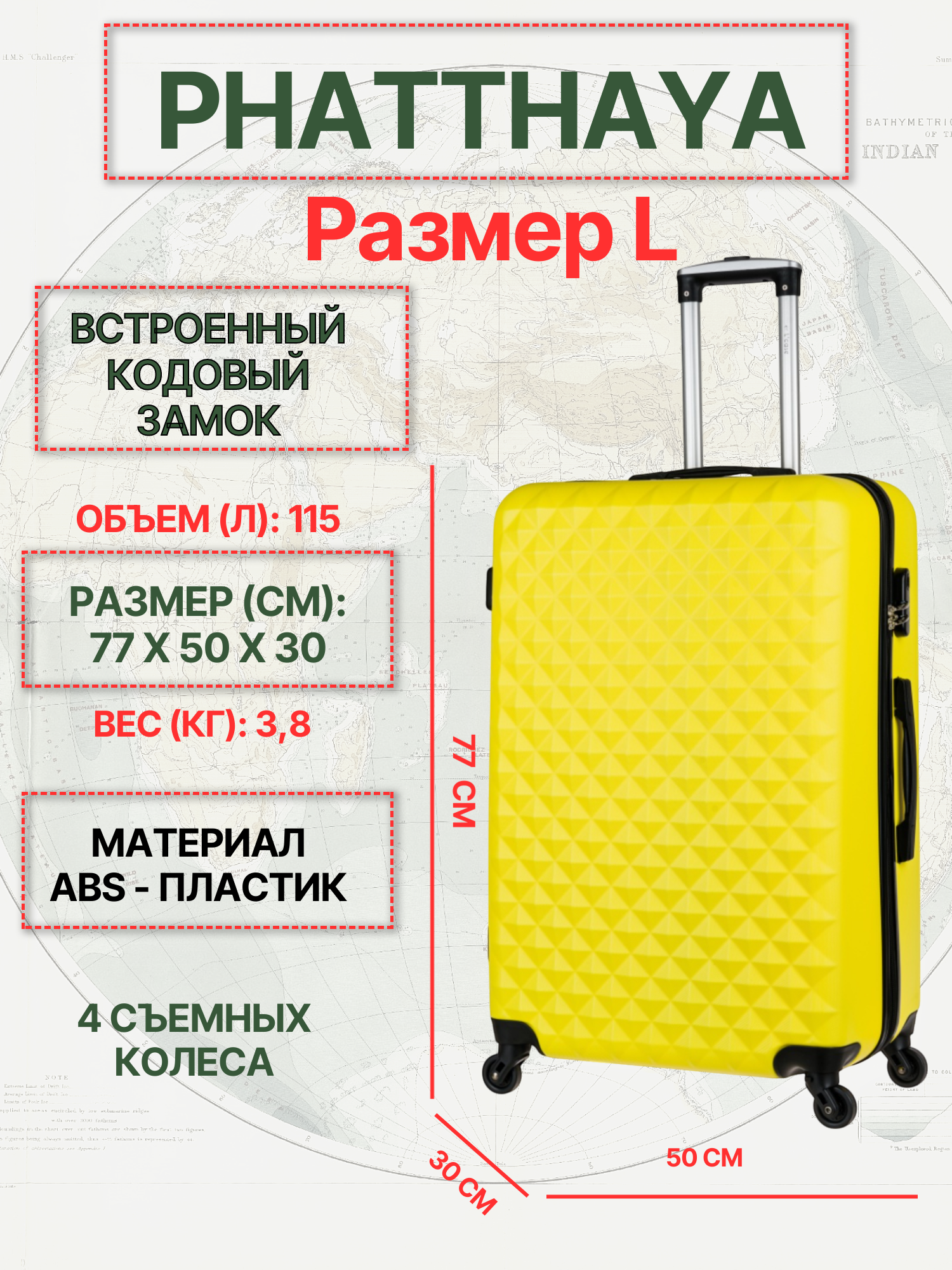 Чемодан на колесах большой L пластиковый Phatthaya, дорожный, ударопрочный, съемные колеса, кодовый замок, семейный 77см, 86л 5 383 ₽