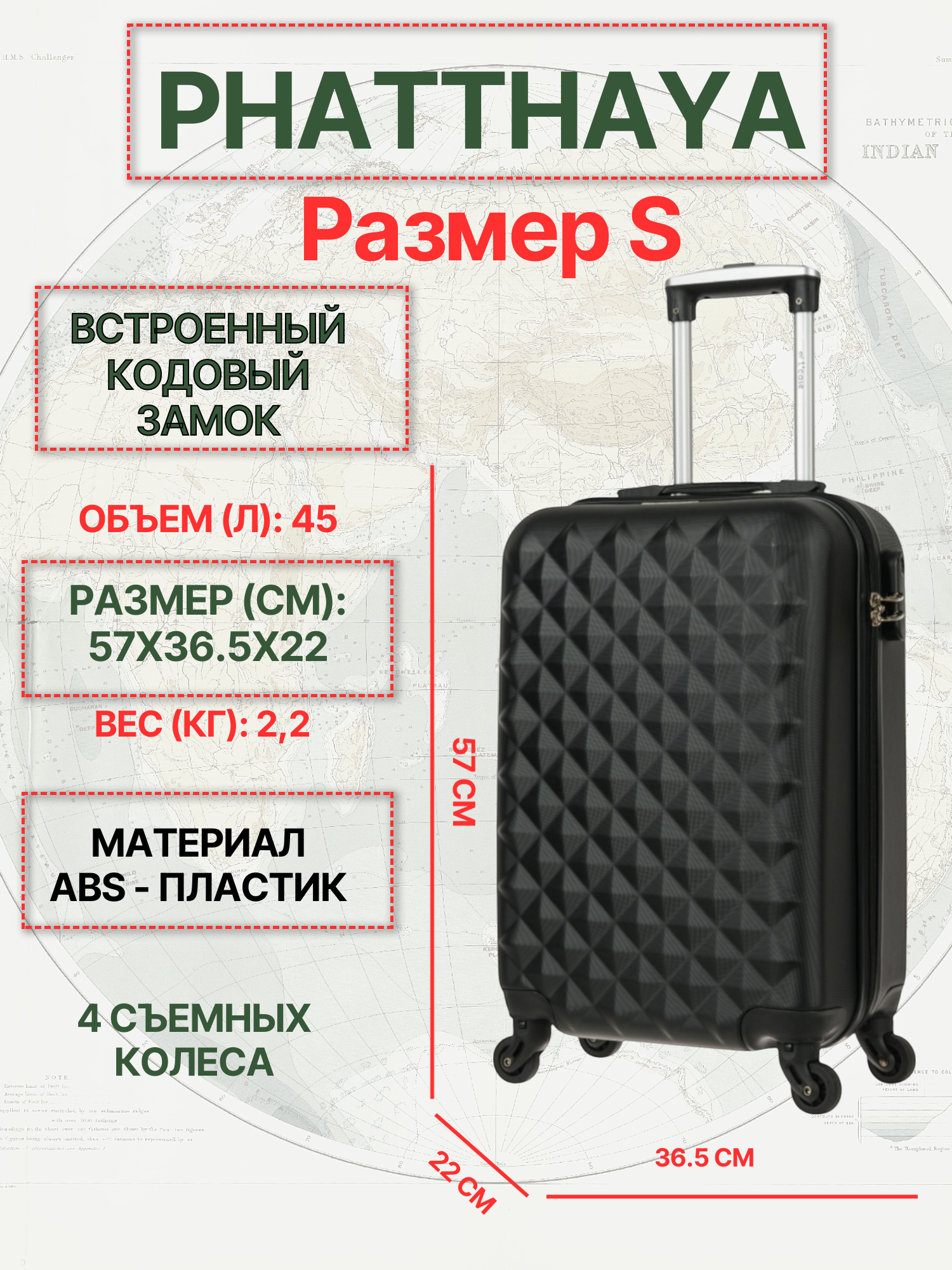 Чемодан на колесах маленький S пластиковый Phatthaya, дорожный, ударопрочный, съемные колеса, кодовый замок, ручная кладь, 56см, 33л