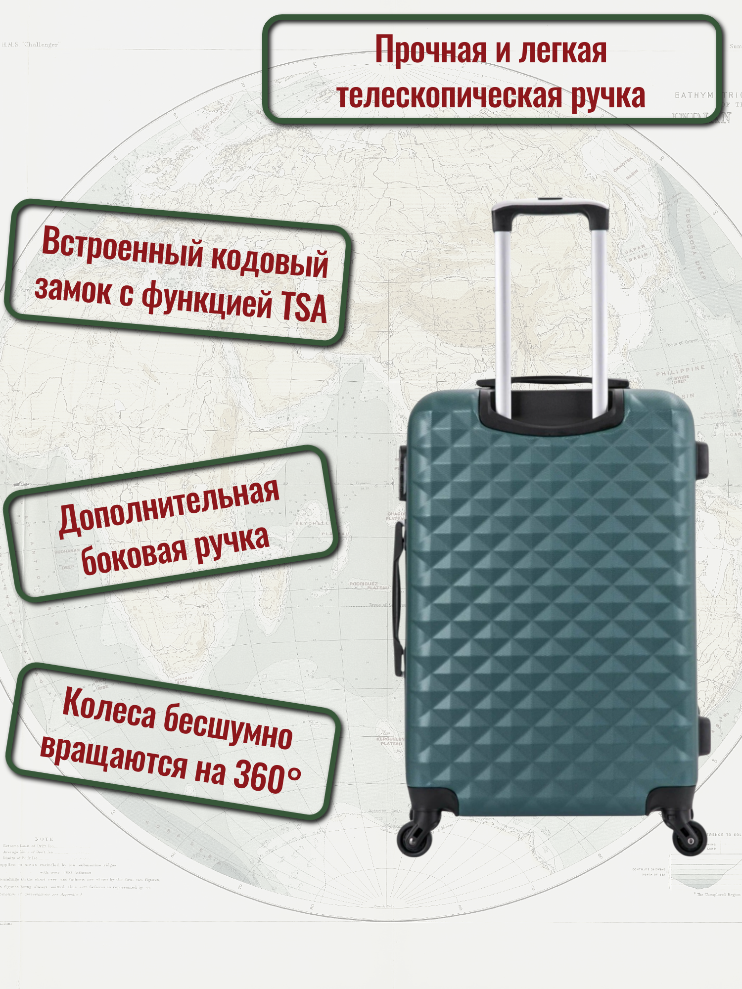 Чемодан на колесах M средний, зеленый - Чемодан ABS - пластик, семейный Lcase