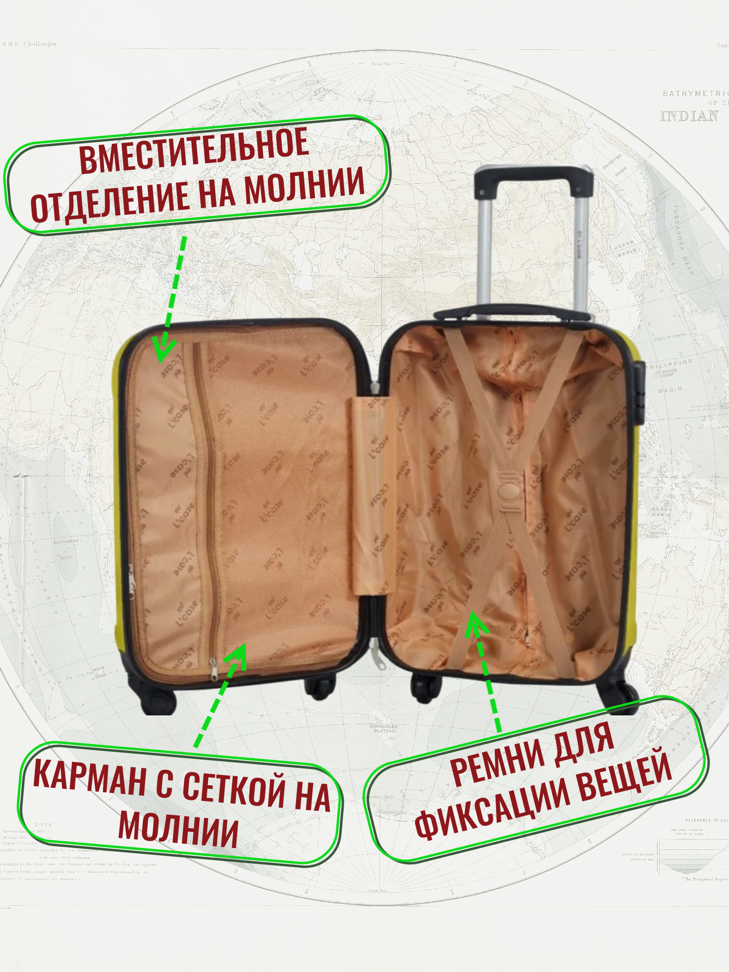Чемодан на колесах L большой, светло - зеленый - Чемодан ABS - пластик, семейный Lcase