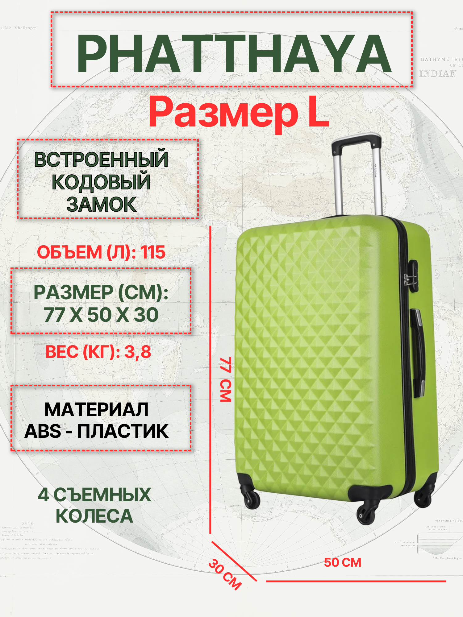 10 цен на Чемодан L'case Phatthaya, 115 л, размер L, зелeный