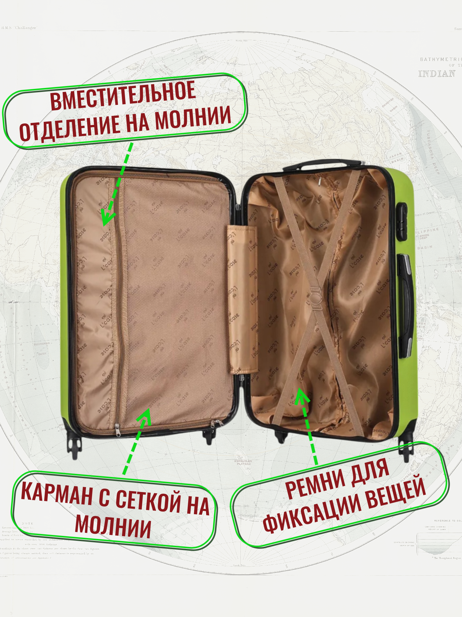 Чемодан на колесах L большой, светло - зеленый - Чемодан ABS - пластик, семейный Lcase