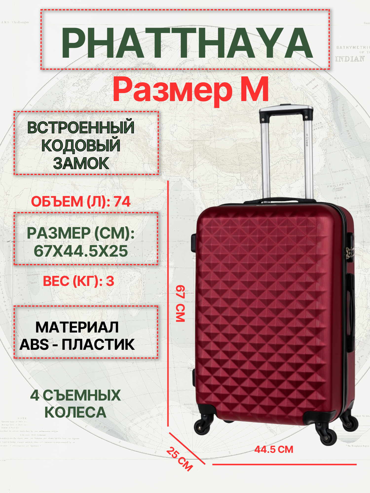 Чемодан на колесах средний М пластиковый Phatthaya дорожный, ударопрочный, съемные колеса, кодовый замок, 65см, 59л 5 072 ₽