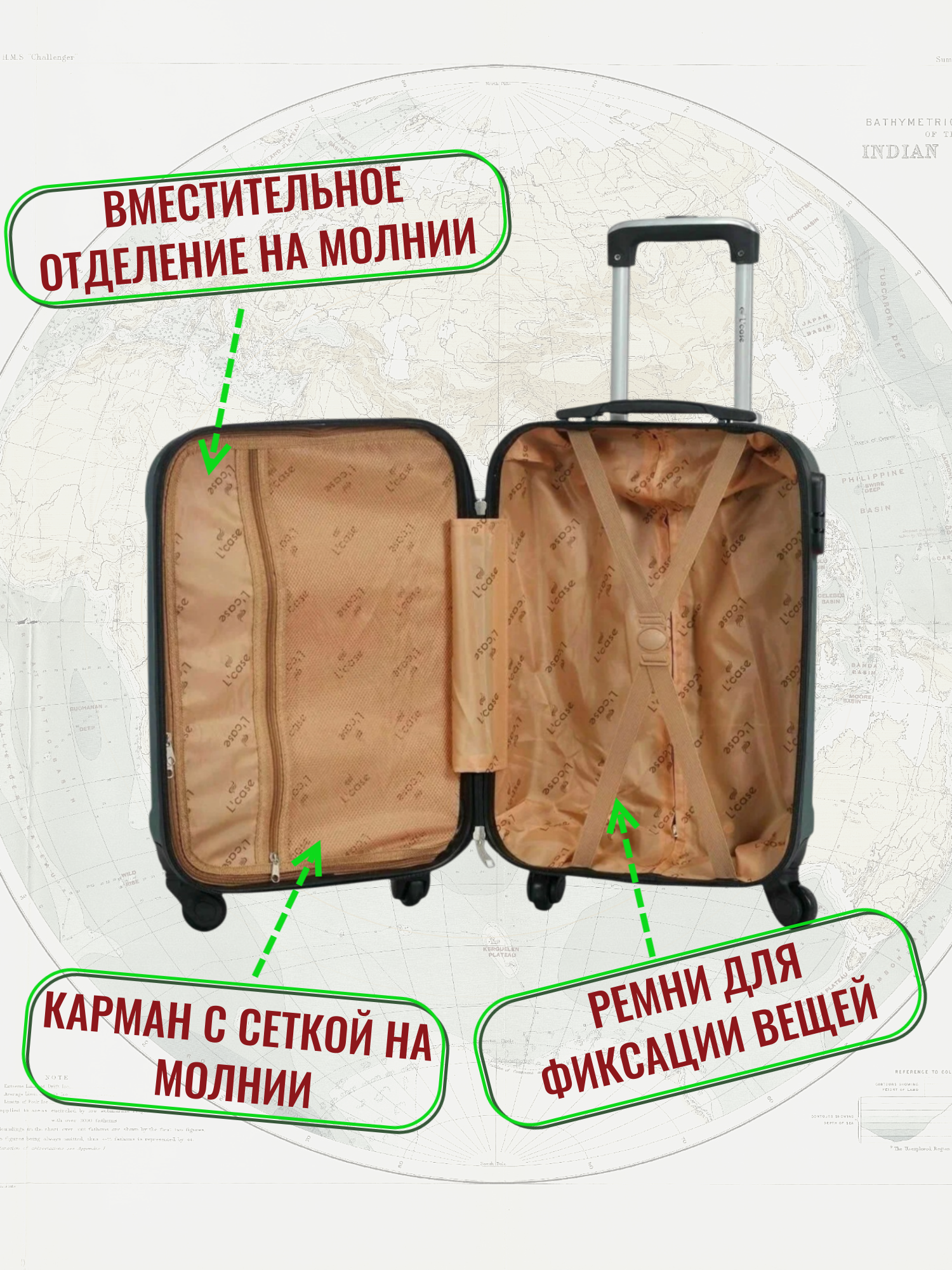 Чемодан L'case Phatthaya, 45 л, размер S, темно-зеленый информация: