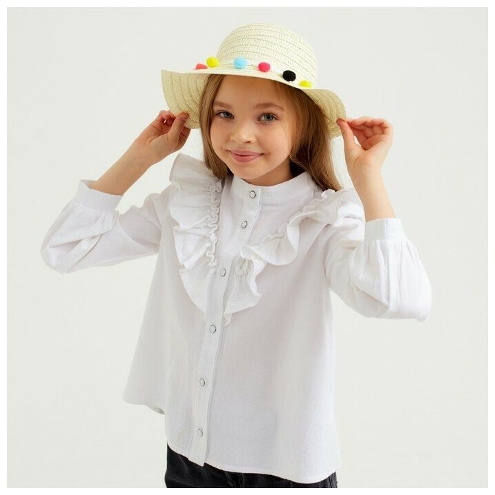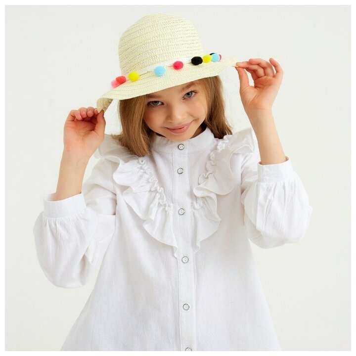 Шляпа с бомбошками для девочки MINAKU, размер 50, цвет белый