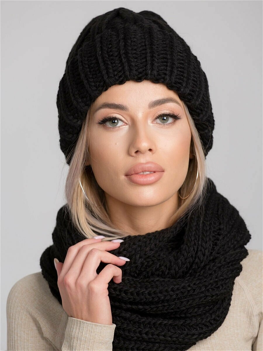 619688843 Комплект (шапка и снуд) женский, шапка вязаная бини с отворотом, теплый шарф зимний объемный