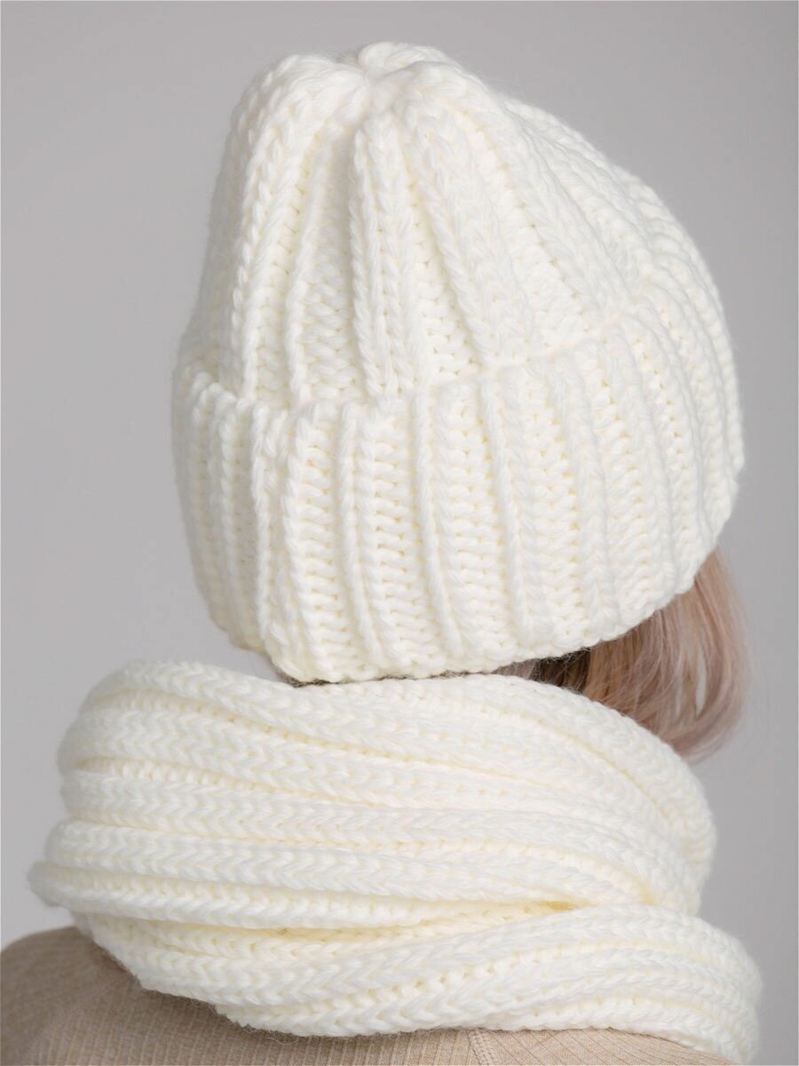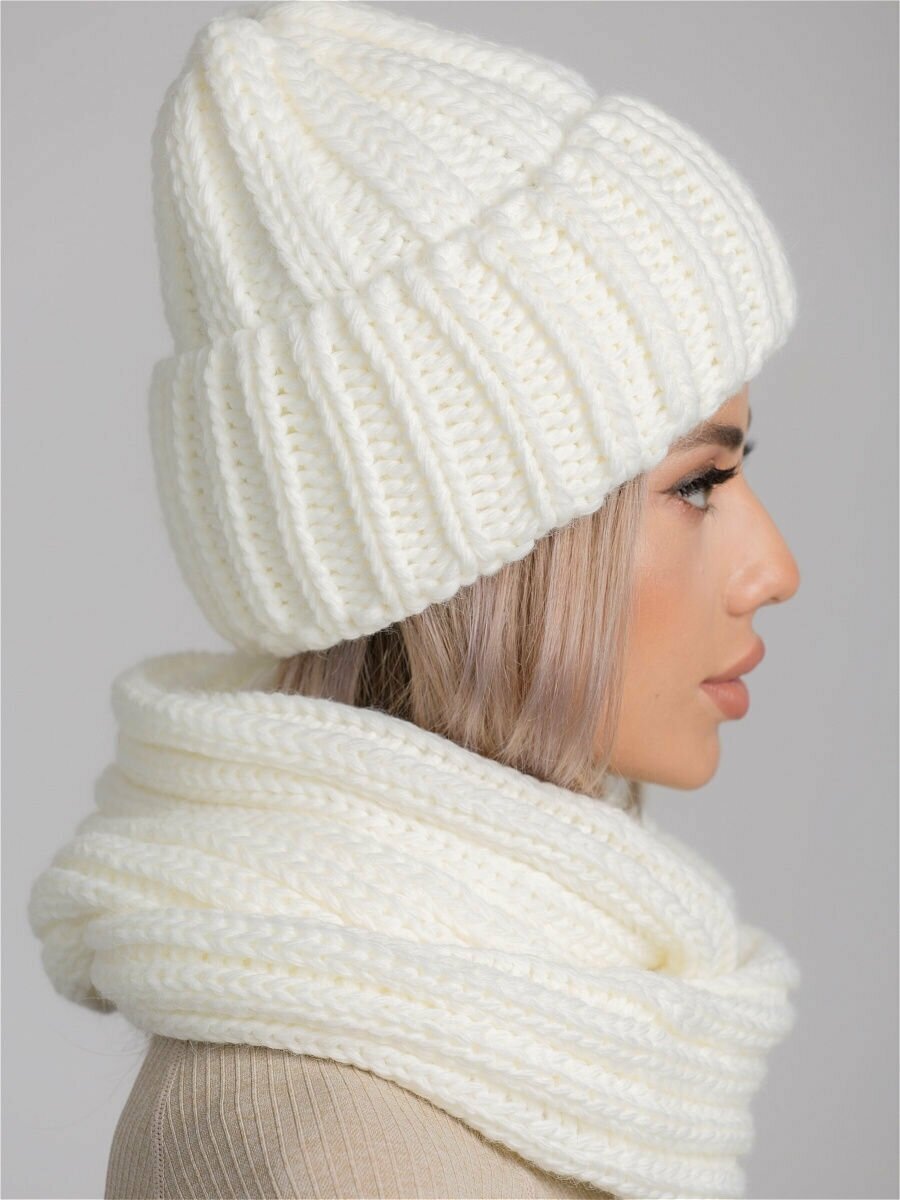 619688843 Комплект (шапка и снуд) женский, шапка вязаная бини с отворотом, теплый шарф зимний объемный