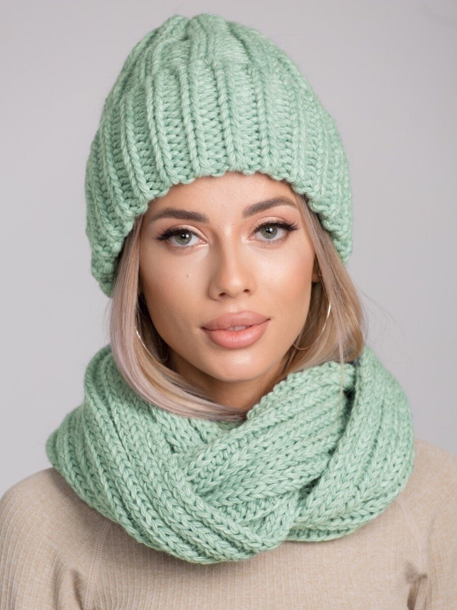 619688843 Комплект (шапка и снуд) женский, шапка вязаная бини с отворотом, теплый шарф зимний объемный