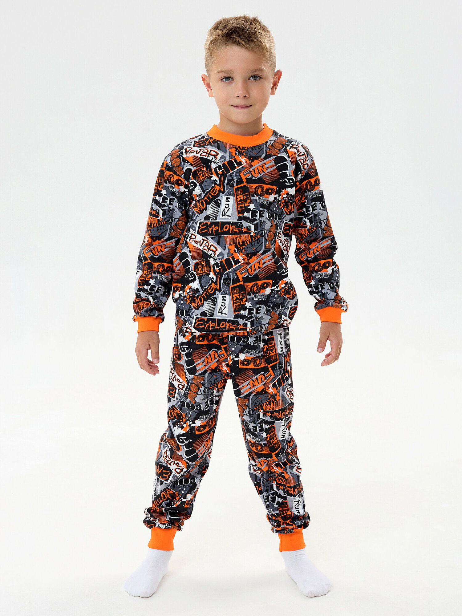 Пижама с начесом, рыжие надписи, размер 122 681 ₽
