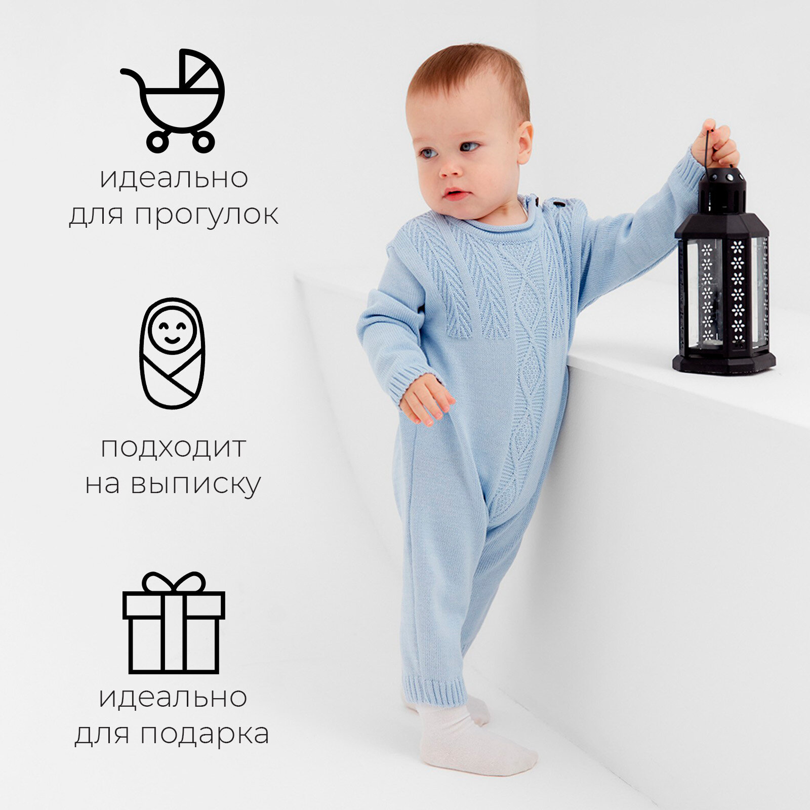 Комбинезон детский вязаный MINAKU, рост 80-86, цвет голубой 3 006 ₽