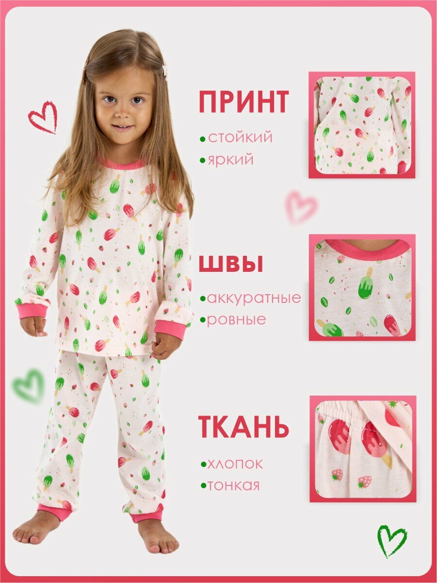 Пижама Веселый Малыш Мороженное, размер 98, розовый, зеленый информация: