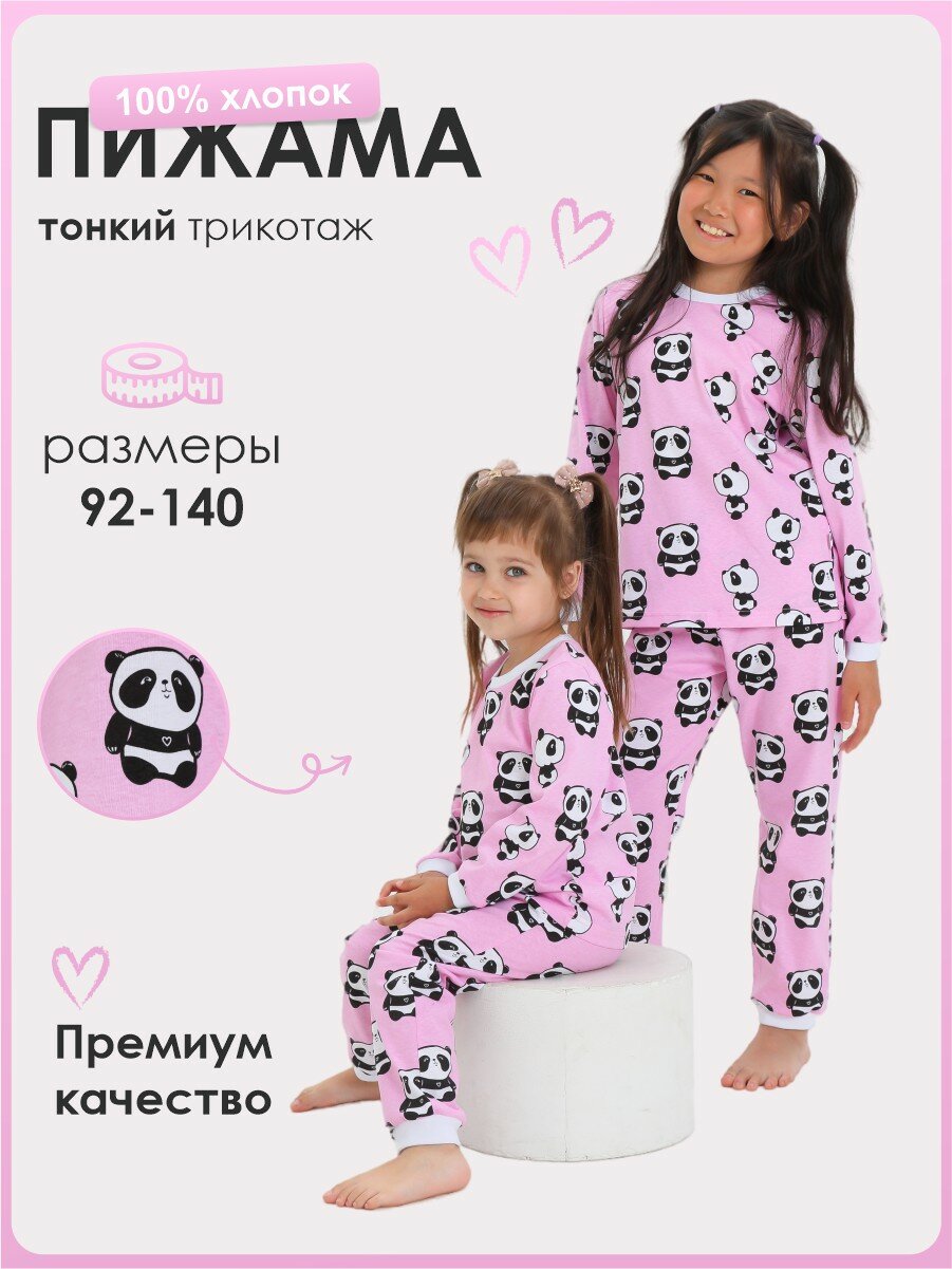 Пижама Веселый Малыш Panda, размер 122, белый, розовый, черный 944 ₽