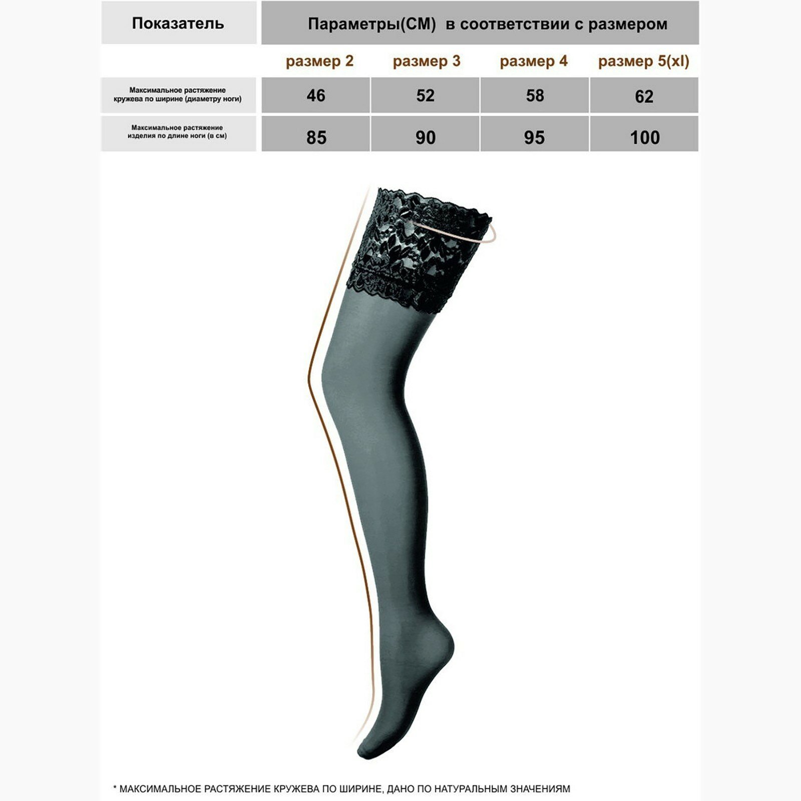 | Дополнительная информация | с кружевной резинкой на силиконовой основе шириной 15 см |