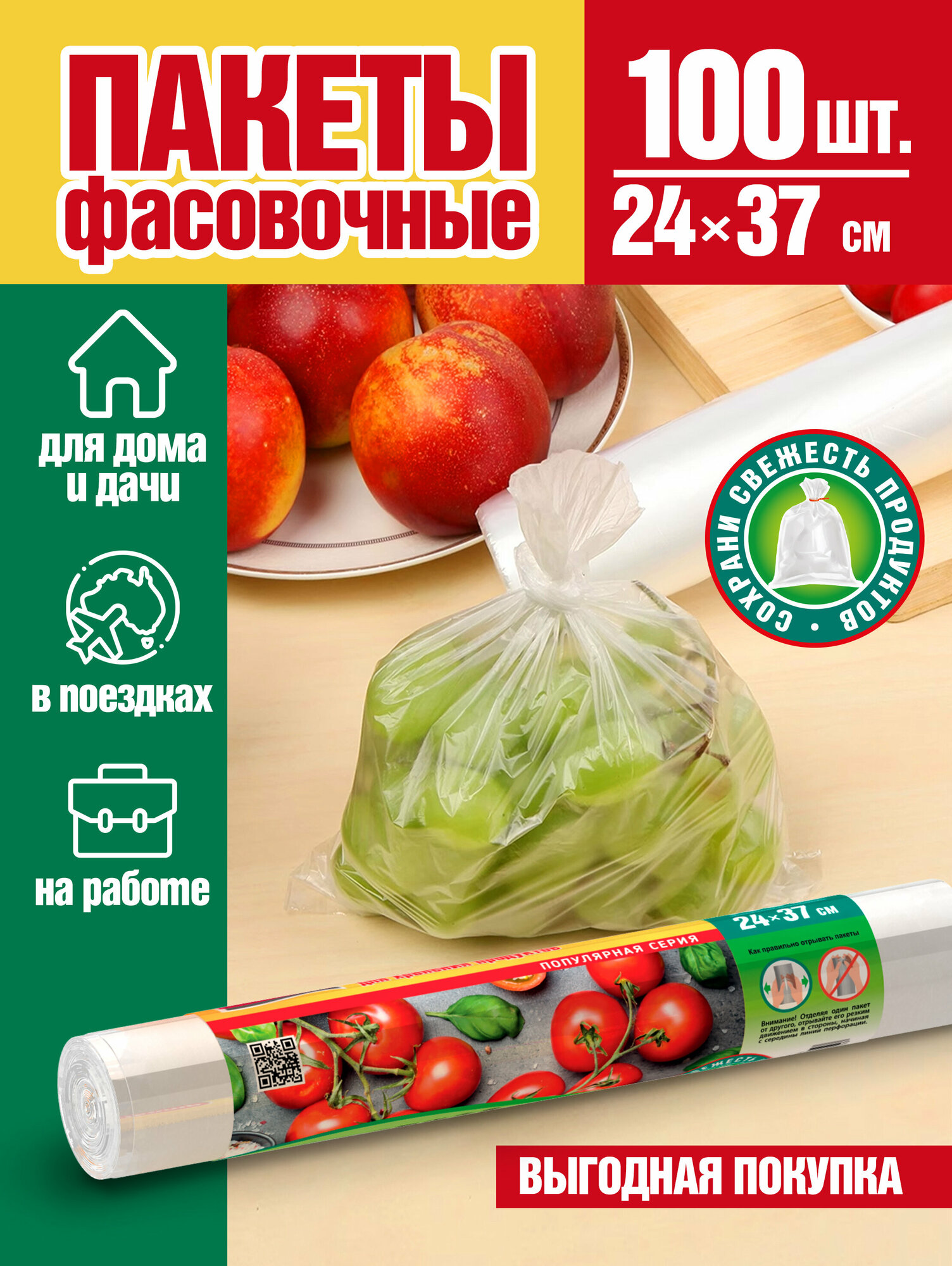 Пакет для хранения продуктов, 100 шт, 24х37 см, прозрачный, Avikomp, 0250