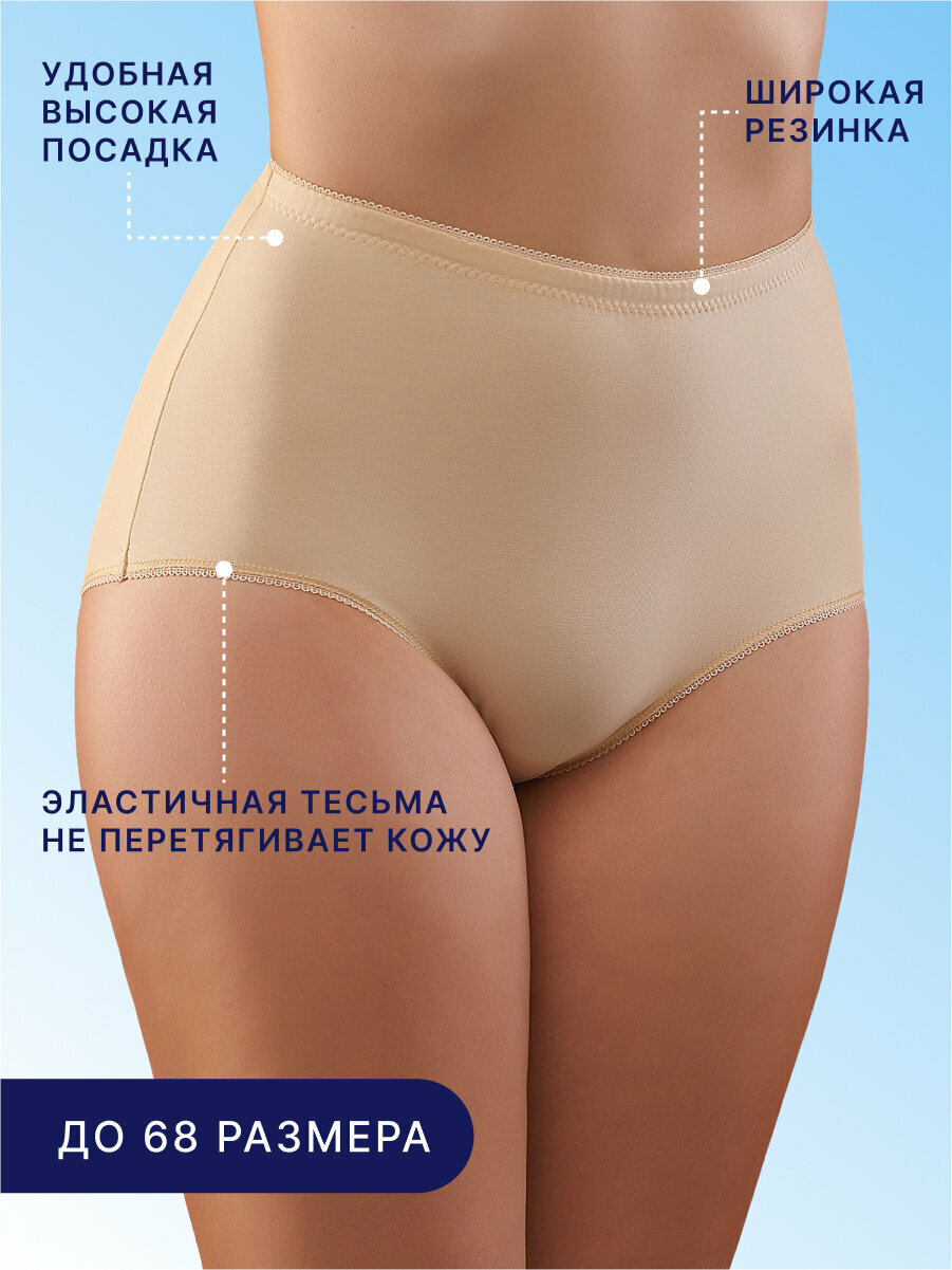 Трусы SeNso Хлопковые женские трусы с высокой посадкой, размер 68, бежевый 492 ₽