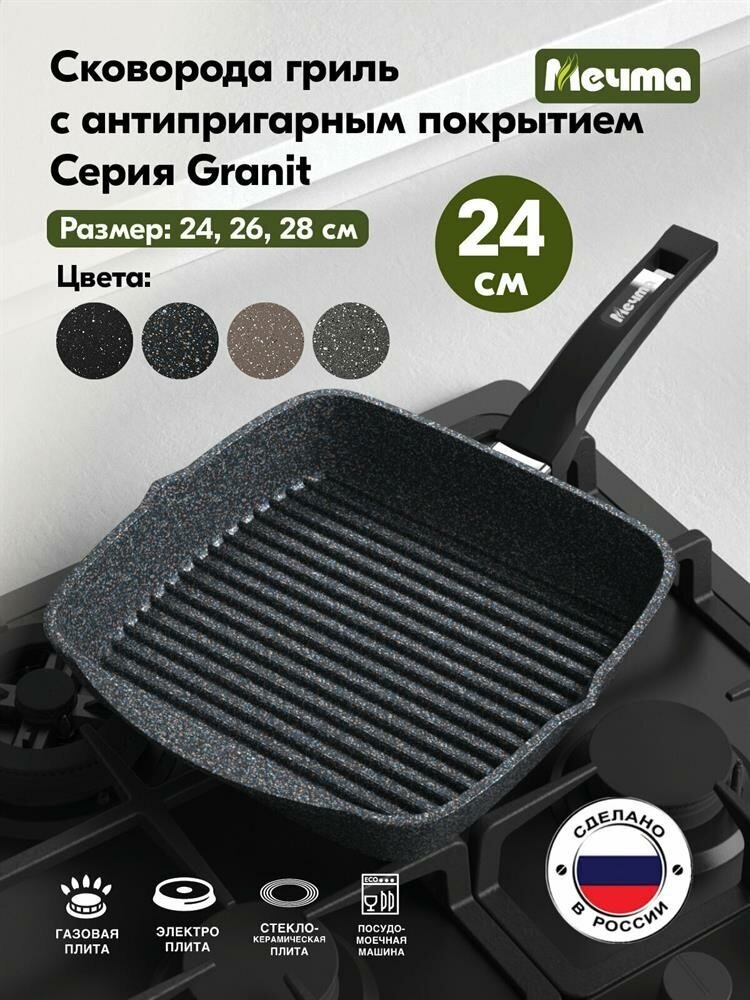 Сковорода-гриль без крышки мечта 64803 Гранит star 24*24 см 1 920 ₽