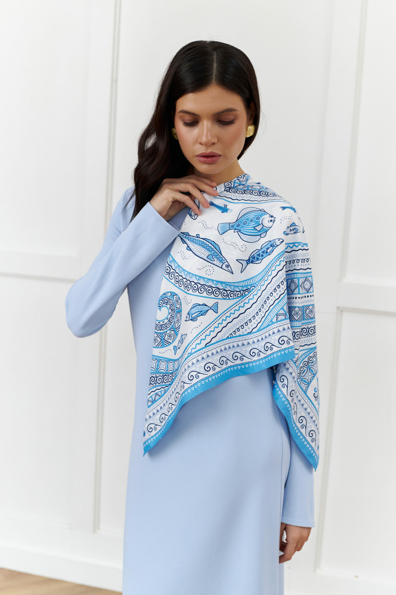 Платок Русские в моде by Nina Ruchkina Север для девочек и женщин,90х90 см, синий информация: