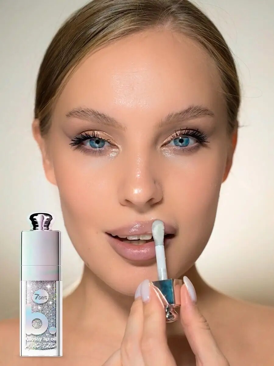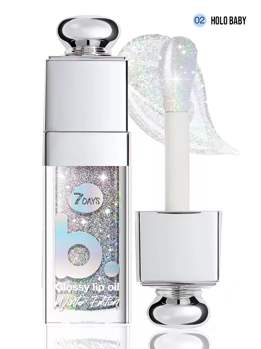 10 цен на 7DAYS Блеск для губ прозрачный с блестками, масло охлаждающее, увлажняющее B.COLOUR 02 HOLO BABY