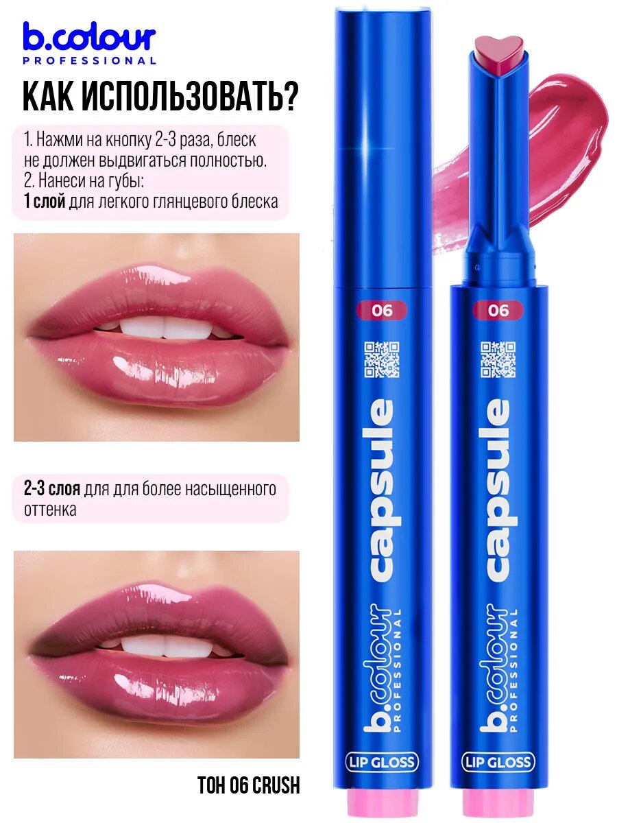 B.COLOUR PROFESSIONAL Блеск для губ розовый прозрачный увлажняющий увеличивающий объем CAPSULE 06 CRUSH информация: