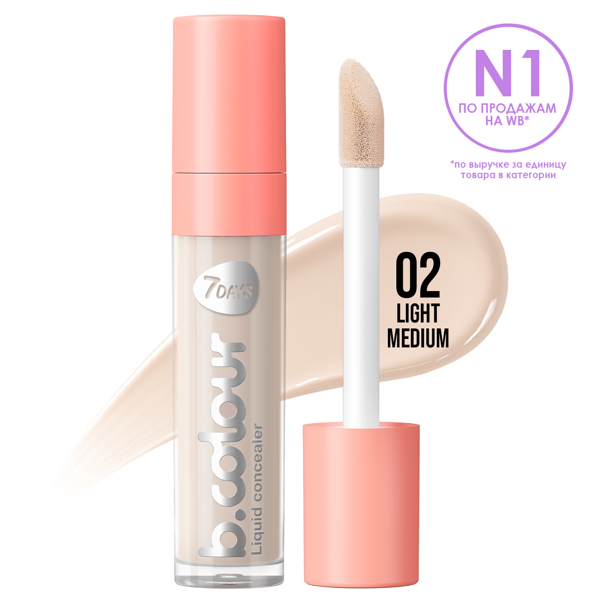 Отзывы на 7DAYS Консилер для лица, корректор от темных кругов под глазами, натуральный, универсальный B.COLOUR 02 LIGHT MEDIUM