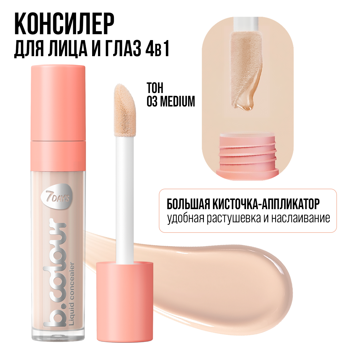 10 цен на 7DAYS Консилер для лица, корректор от темных кругов под глазами, контуринг B.COLOUR 03 MEDIUM