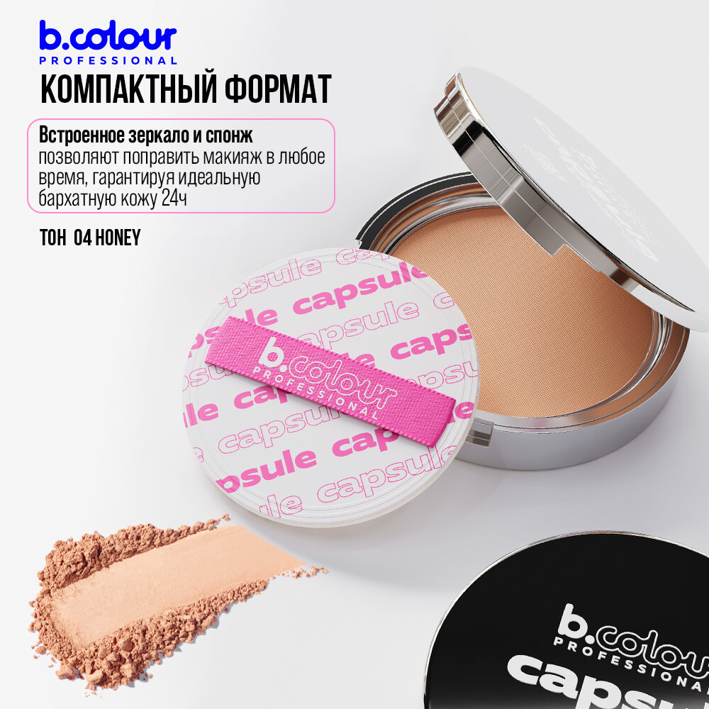 10 цен на B.COLOUR PROFESSIONAL Пудра для лица матирующая фиксирующая компактная с зеркалом CAPSULE, 04 HONEY