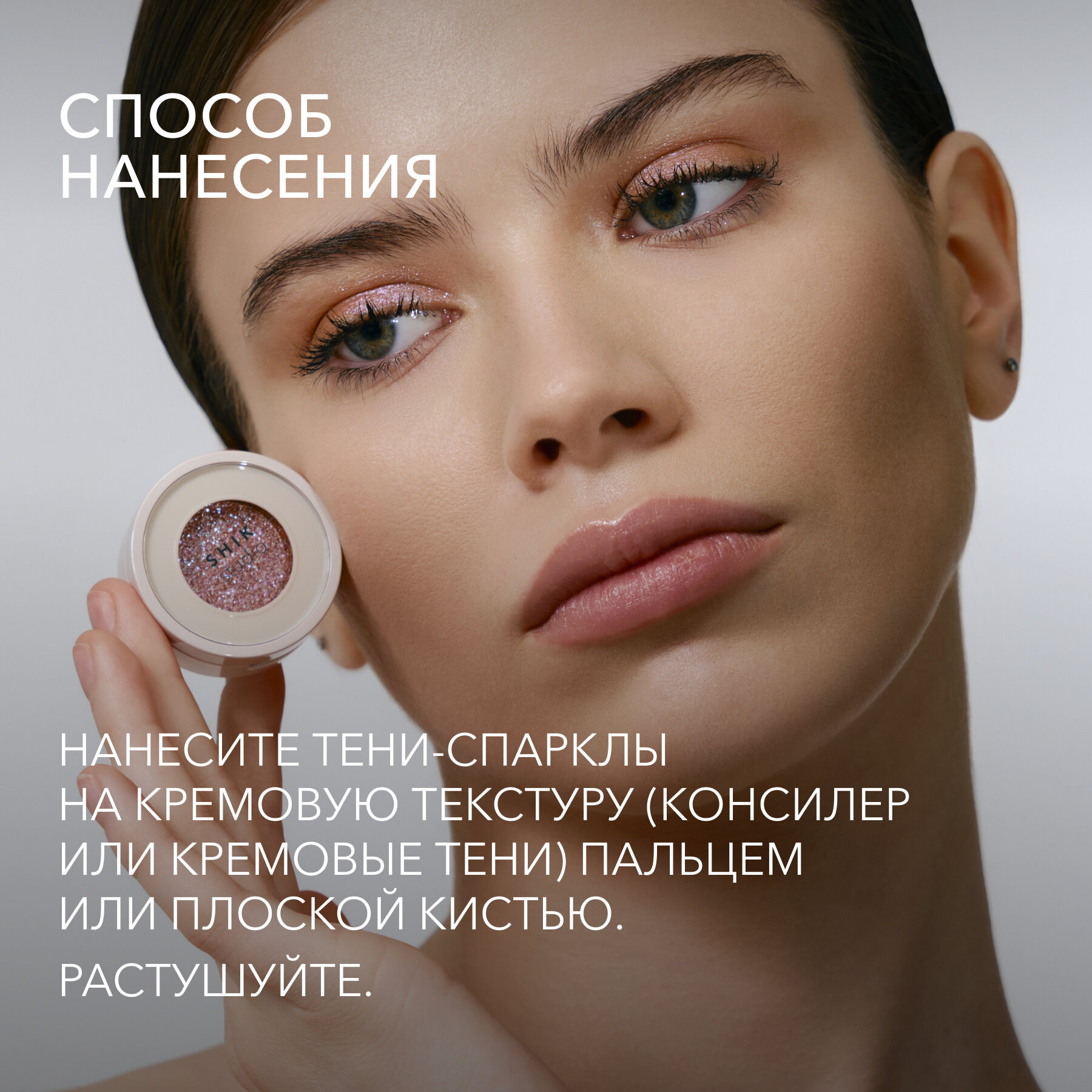 | Способ применения | 1. Нанесите спарклы на кремовую текстуру (консилер или жидкие тени) пальцем или плоской кистью. 2. Растушуйте. |