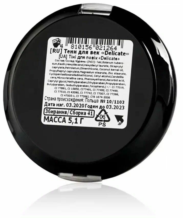 | Способ применения | с помощью аппликатора или кисточки легким движением равномерно нанесите на веки глаз, выбранный оттенок теней |