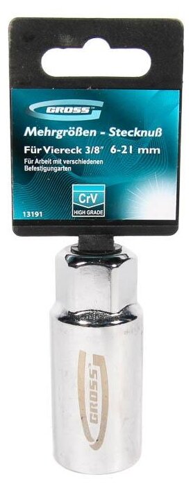 Головка торцевая многоразмерная CrV (6-21мм) под квадрат 3/8", CrV, хромир.// Gross 13191 информация: