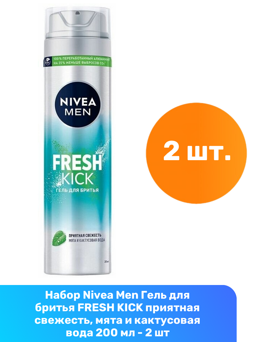 10 цен на Nivea Men Гель для бритья FRESH KICK приятная свежесть, мята и кактусовая вода 200 мл - 2 шт