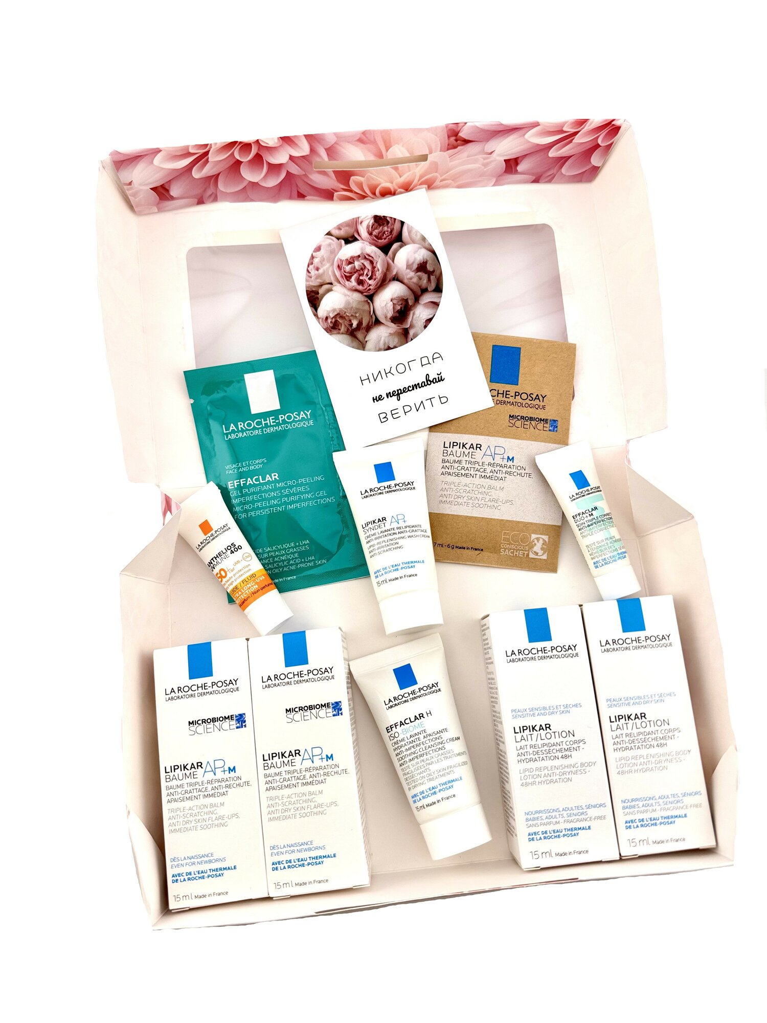 | В наборе | Мицеллярная вода Ultra 15 мл (1 штука) NORMADERM PHYTOSOLUTION Gel 15 мл (2 штуки) МИЦЕЛЛЯРНАЯ ВОДА ULTRA sensitive skin 15 мл. (2 штуки) EFFACLAR H ISO-BIOME CREME 15 мл (2 шт.) La Roche Posay LIPIKAR BAUME AP+M- саше 7 мл. ( 2 штуки) ANTHELIOS SPF 50+ Fluide 3 мл. (1 штука) |