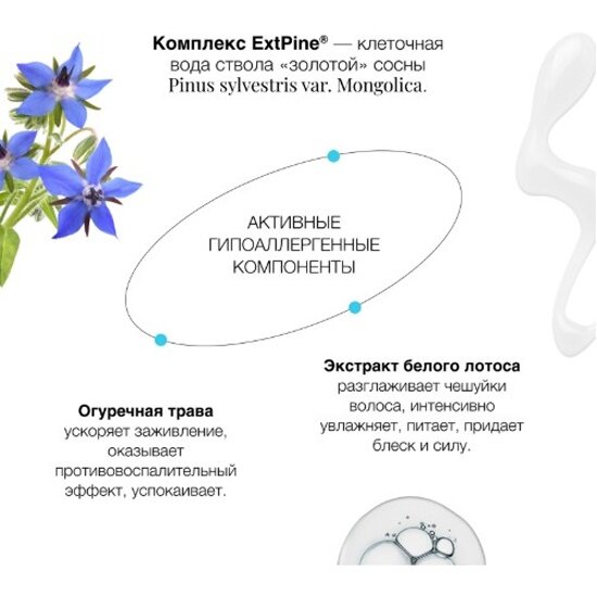 | Способ применения | Aqua with infusioпs of Piпus Sylvestris Trunk Water (вытяжка «золотой» сосны), Nelumbo Nucifera Extract (экстракт белого лотоса), Borago Officinalis Extract (экстракт огуречной травы); Cetearyl Alcohol, Organic Cocos Nucifera Oil (органическое масло кокоса), Behentrimonium Chloride, Hydrolyzed Wheat Protein (протеины пшеницы), Benzyl Alcohol, Benzoic Acid, Sorbic Acid. |