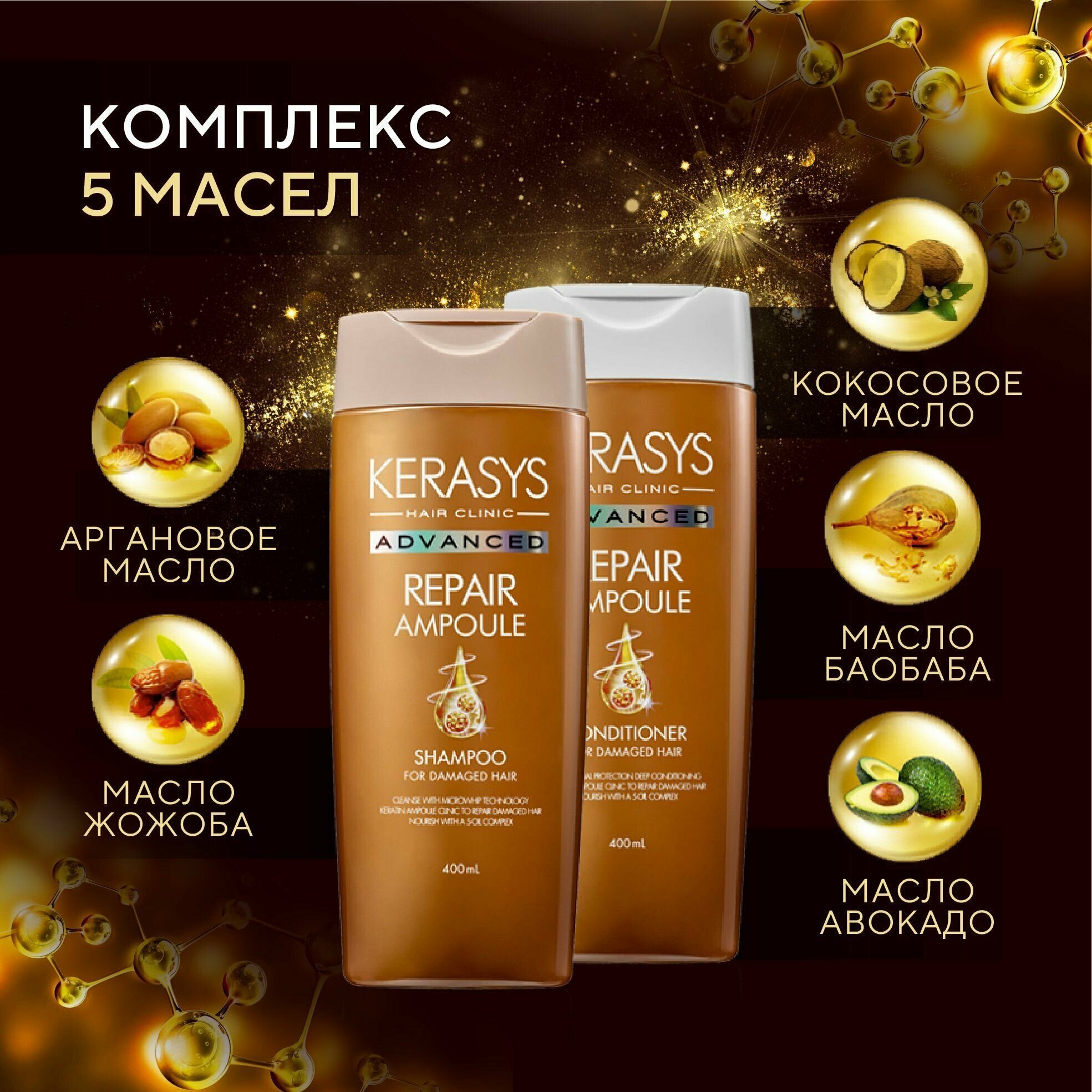 Кондиционер KERASYS Ампульный Advanced "Интенсивное восстановление" с кератиновыми ампулами, 400 мл