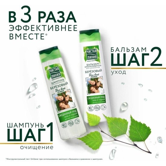 Чистая Линия 2в1 шампунь-бальзам для всей семьи Березовый, увлажняет и смягчает волосы 400 мл